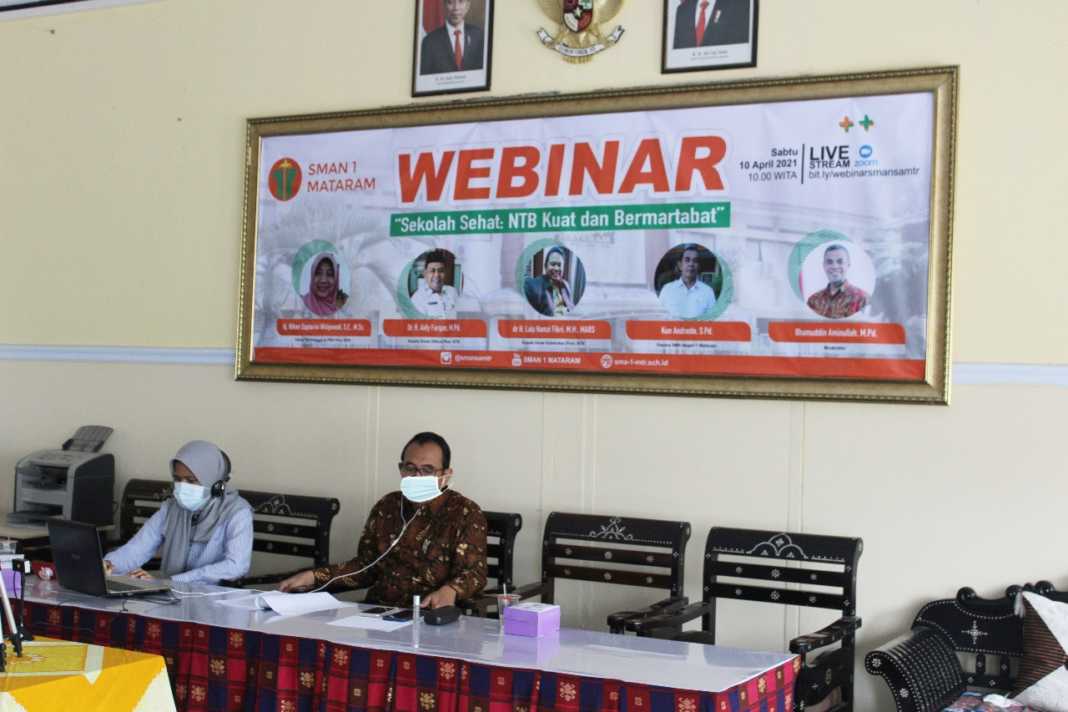 SMAN 1 Mataram mendorong perilaku hidup bersih dan sehat (PHBS) dengan menggelar webinar Sekolah Sehat: NTB Kuat dan Bermartabat, Sabtu (10/4). Kepala Dinas Dikbud NTB H Aidy Furqan mengapresiasi kegi