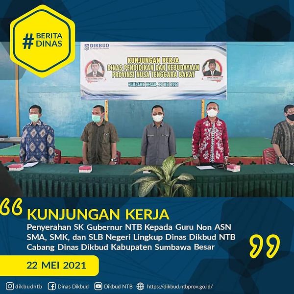 Kunjungan Kerja Kepala Dinas Dikbud NTB dan Juknis PPDB SMA, SMK, dan SLB Negeri serta penyerahan SK Gubernur untuk Guru Non ASN Lingkup Kantor Cabang Dinas Kabupaten Sumbawa Barat Pada Sabtu, 22 Mei