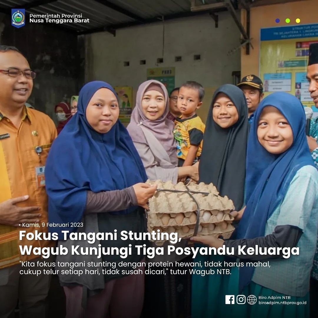 Wakil Gubernur NTB, Dr. Hj. Sitti Rohmi Djalilah mengunjungi tiga Posyandu Keluarga di Kota Mataram dan Lombok Barat, Kamis, Kamis 9 Februari 2023. Pada kunjungan tersebut, Wagub NTB mengarahkan agar