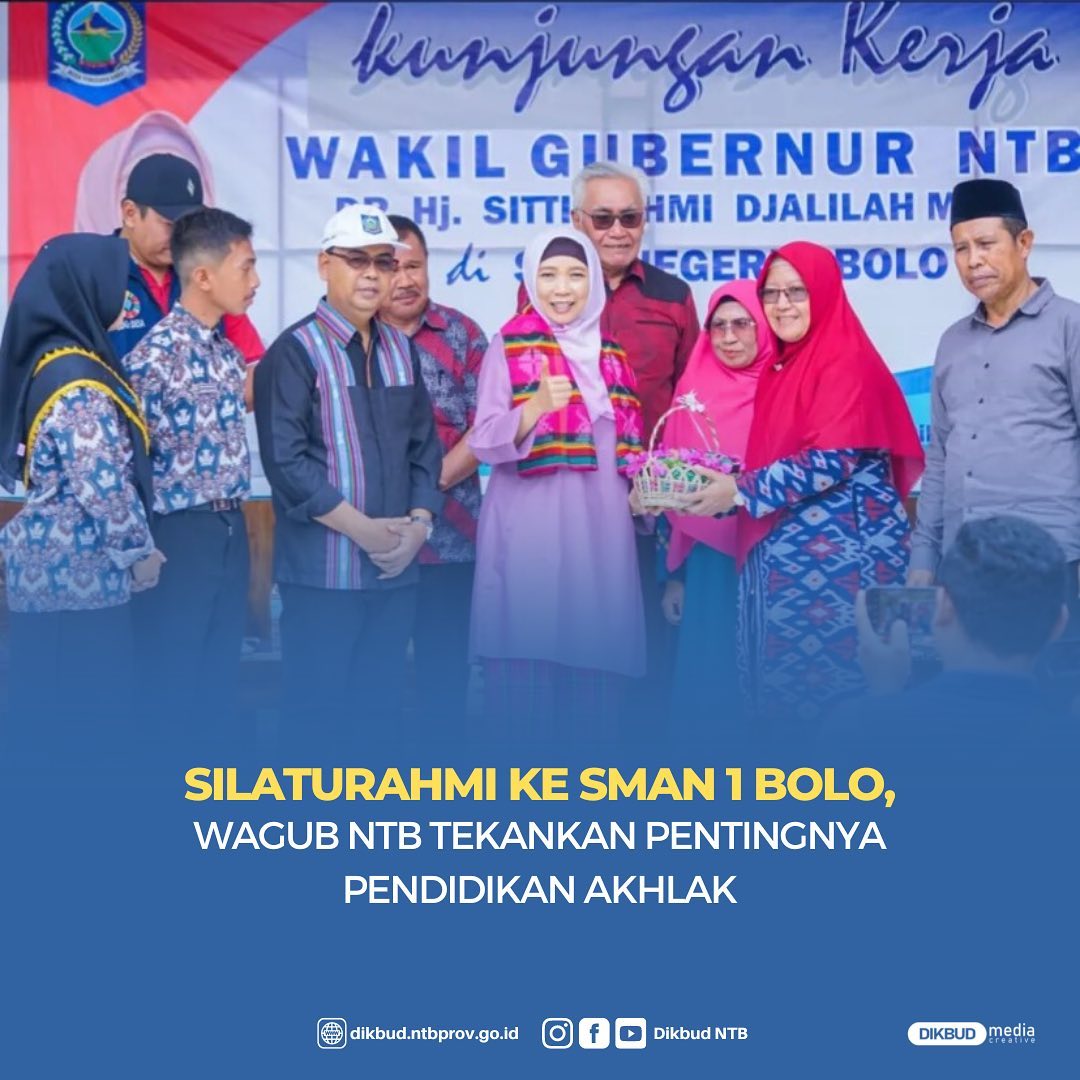 Wakil Gubernur NTB, Dr. Hj. Sitti Rohmi Djalilah, menyampaikan bahwa pendidikan akhlak sangat penting dalam menjalani kehidupan. Hal ini disampaikan Wagub saat hadir bersilaturahim ke SMA Negeri 1 Bo
