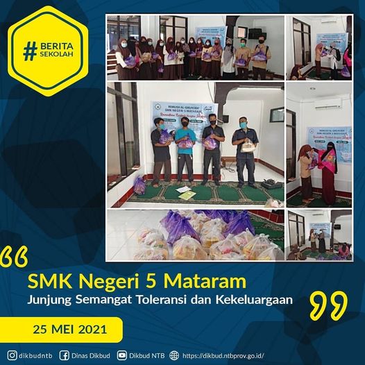 Dalam rangka pencegahan Intoleransi di institusi pendidikan, SMK Negeri 5 Mataram melalui Remaja Musholla Al - Ghuroba dan OSIS yang beragama non muslim melakukan penggalangan dana dari seluruh Siswa