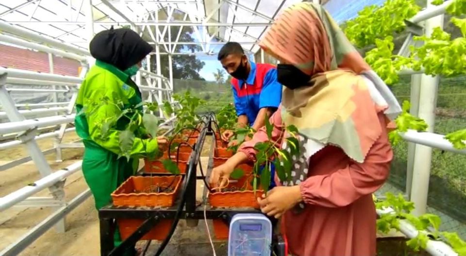 Seorang guru Sekolah Menengah Kejuruan Negeri (SMKN) 1 Sakra Kabupaten Lombok Timur NTB Kembangkan inovasi baru dengan mengembangkan alat siram manual menjadi alat siram otomatis. Huswatun Ida Laillat