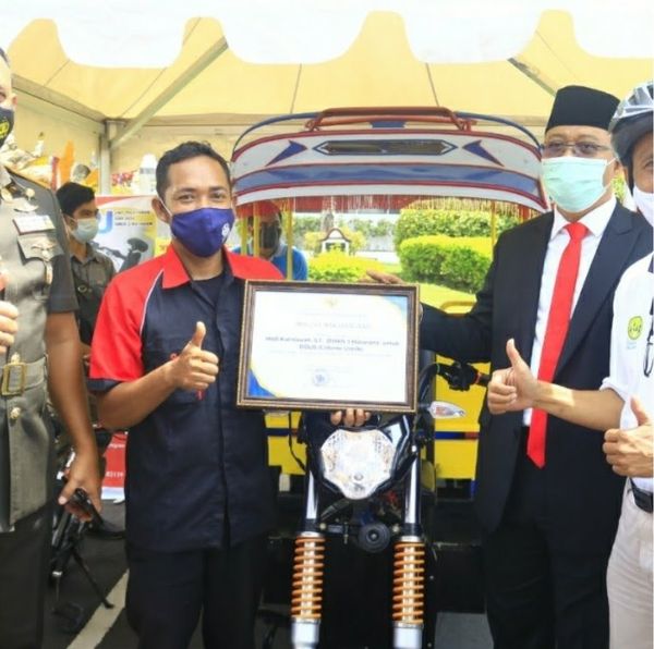 Jumat berkah 26 Februari 2021 di halaman kantor gubernur NTB tim Dolis SMKN 3 MATARAM dengan karya inovatifnya Cidomo Listrik suatu kendaraan tradisiinal alternatif berbasis energi listrik telah di pa