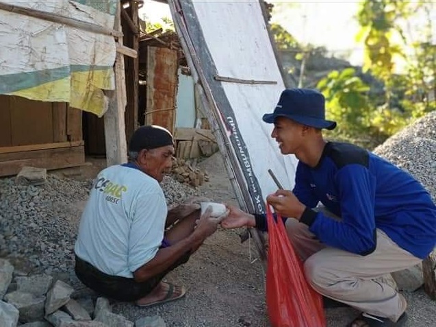 Kegiatan mulia yang dilakukan oleh Pembina dan anggota ekstrakurikuler PMR Wira SMKN 2 Kota Bima menjelang berbuka puasa membagikan 100 takjil gratis dari usaha sosialnya kepada pengemis, tukang pemec
