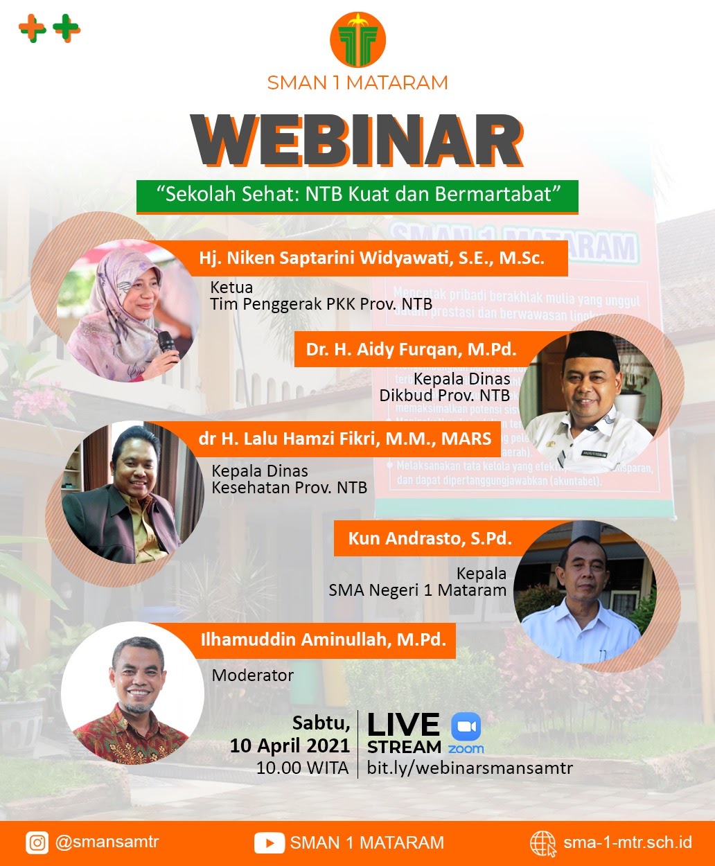 Sabtu, 10 Maret 2021, Pukul 10.00 Wita - 12.00 Wita melaksanakan Webinar yang bertajuk "Sekolah Sehat : NTB Kuat dan Bermartabat". Kegiatan webinar ini diikuti oleh Kepala Sekolah - Kepala Sekolah yan