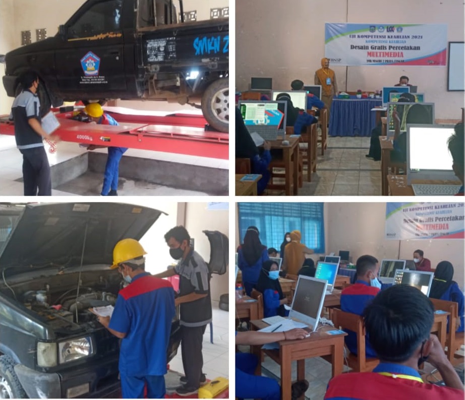 Ujian Kompetensi Kejuruan ini dilaksanakan dengan luring atau tatap muka. Dimulai dari tanggal 05 April 2021 untuk kompetensi Teknik Kendaraan Ringan dan Multimedia. UKK ini dilaksanakan terhadap kela