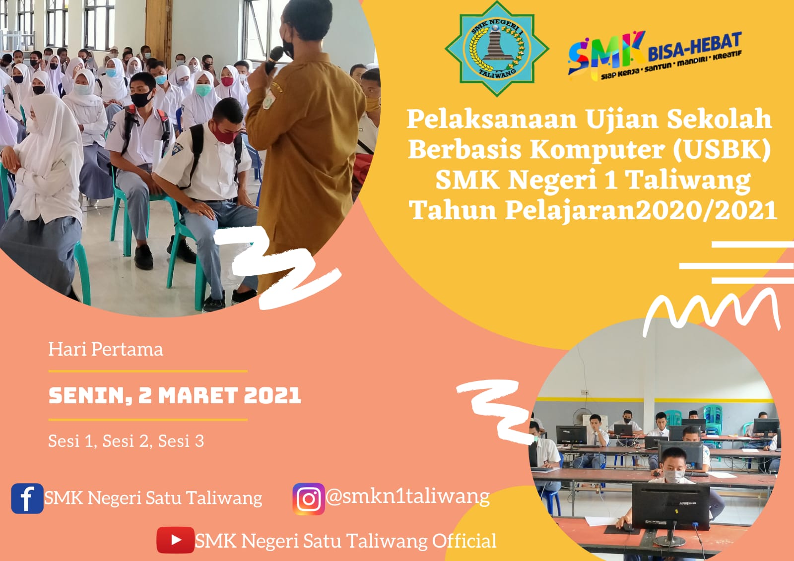 Pelaksanaan Ujian Sekolah Berbasis Komputer (USBK) hari pertama, Senin 22 Maret 2021 berlangsung lancar dan tertib serta dengan ketat menerapkan protokol kesehatan covid-19. Jumlah Peserta yang mengik