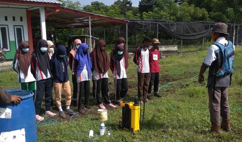 Hari Sabtu 20 Maret 2021, Siswa siswi SMK Negeri 1 Pekat jurusan Agribisnis Tanaman Perkebunan (ATP), dan Agribisnis Tanaman Pangan dan Hortikultura (ATPH) melaksanakan kegiatan praktik penyemprotan h