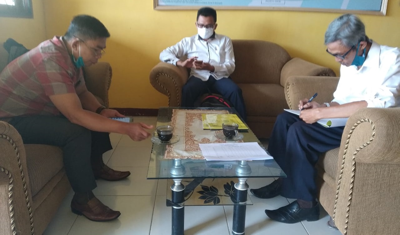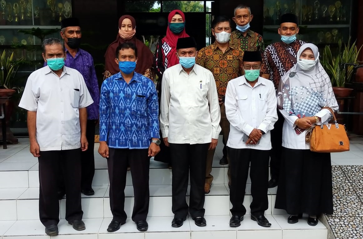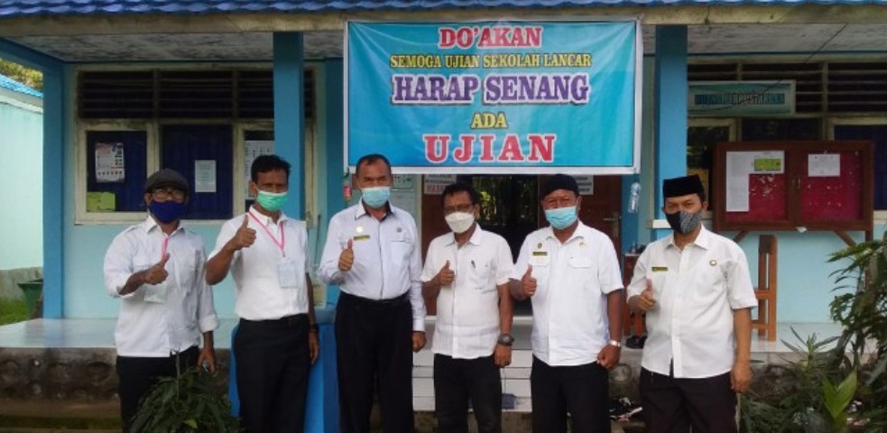 Kedatangan rombongan pengawas melakukan monitoring dan evaluasi pelaksanaan kegiatan ujian sekolah berbasis komputer di SMK Negeri 4 Kota Bima, Rabu 17 Maret 2021, disambut oleh kepala sekolah dan pan
