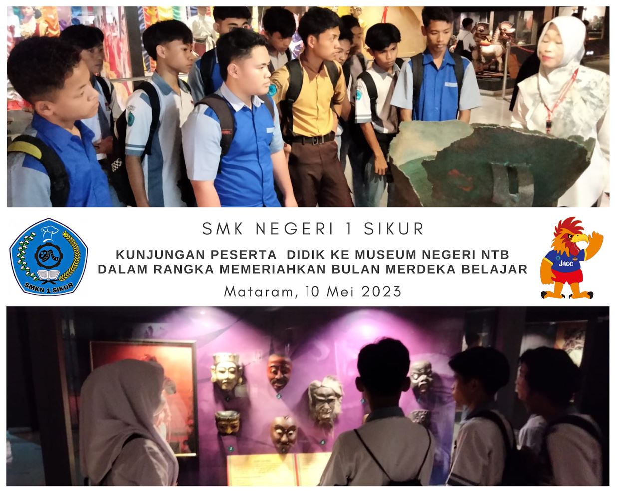 Peserta didik SMK Negeri 1 Sikur Konsentrasi Keahlian Seni Lukis berkunjung ke Museum Negeri Nusa Tenggara Barat. Kunjungan ke Museum ini dilaksanakan pada hari Rabu, 10 Mei 2023 dan bertujuan untuk m