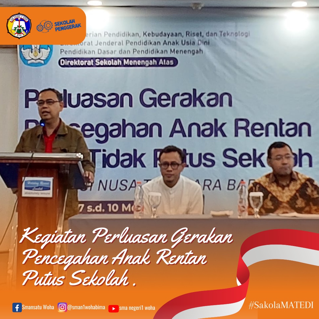 Kepala SMAN 1 Woha, Hairul Juhdy, S.Pd mengikuti Kegiatan Perluasan Gerakan Pencegahan Anak Rentan Putus Sekolah yang dilaksanakan Direktorat SMA Kemendikbudristek bekerja sama dengan Dinas Dikbud NTB