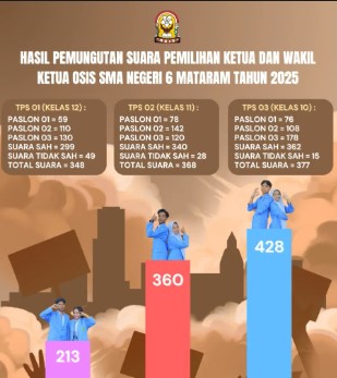 Suasana demokrasi terasa kuat di lingkungan SMA Negeri 6 Mataram saat seluruh siswa, guru, dan pegawai mengikuti Pemilihan Ketua dan Wakil Ketua OSIS untuk periode 2024–2025. Pemilihan yang menjadi