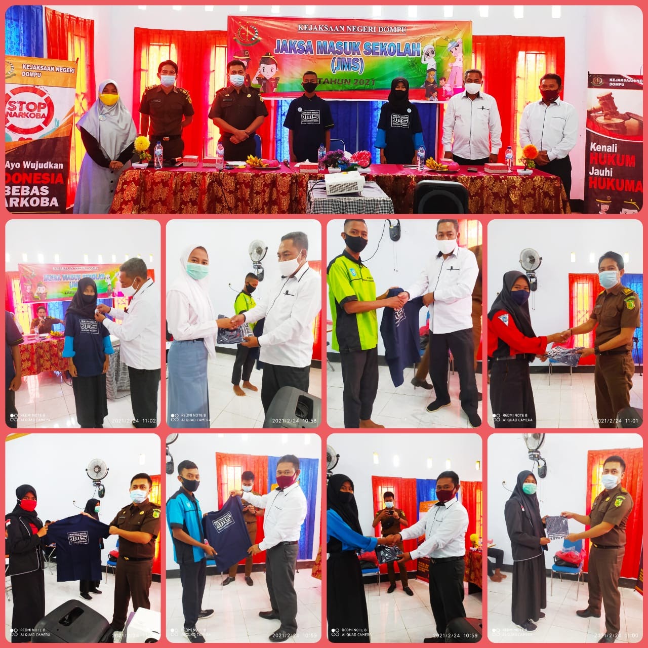 Kegiatan "Jaksa Masuk Sekolah" yang diselenggarakan oleh Kejaksaan Kabupaten Dompu Tahun 2021 di SMKN 1 Hu'u. Kegiatan diikuti oleh perwakilan siswa dan siswi kelas X dan XI seluruh kompetensi keahl