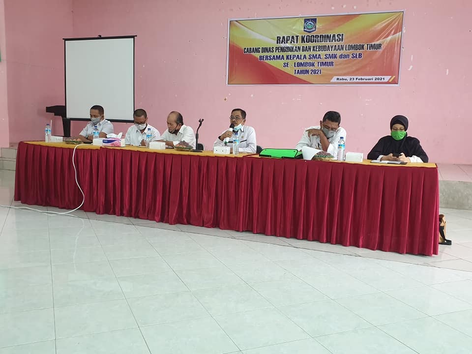 Pada hari ini Rabu 24 Februari 2021 telah diadakan Rapat Koordinasi Cabang Dinas Pendidikan dan Kebudayaan Kabupaten Lombok Timur Bersama Kepala SMA/SMK dan SLB Se-Lombok Timur Tahun 2021 yang bertemp