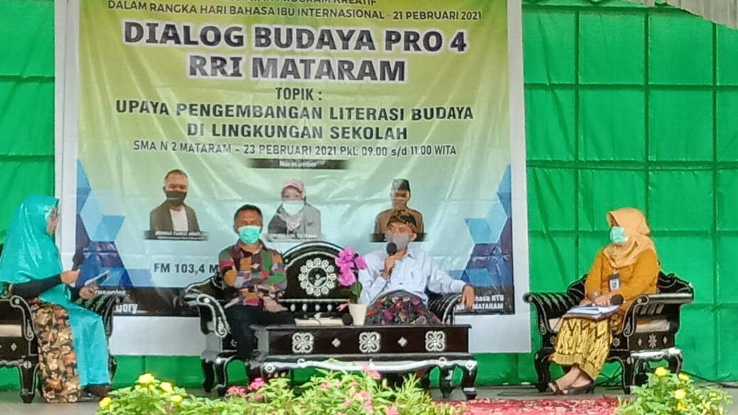 Dalam rangka memperingati Hari Bahasa Ibu internasional, Kantor Bahasa Provinsi NTB bersama dengan RRI Pro 4 Mataram dan SMAN 2 Mataram menggelar acara Dialog Budaya yang dibagi menjadi 2 sesi. Sesi 1
