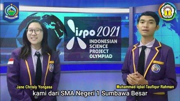 Selengkapnya . . .Tim SMAN 1 Sumbawa Besar : Muhammad Iqbal Taufiqur Rahman & Jane Chrisly Yongasa Raih Medali Perak di Indonesian Science Project Olympiad 2021