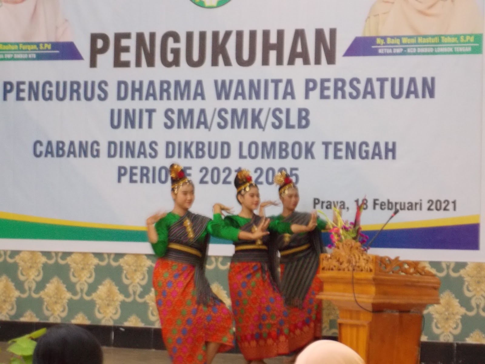 Penyambutan dan memeriahkan acara dharma wanita dikbud ntb. Sanggar tari SMAN 2 PRAYA selalu diminta untuk berpartisipasi disetiap kegiatan pemda maupun program kesenian di dikbud maupun taman budaya