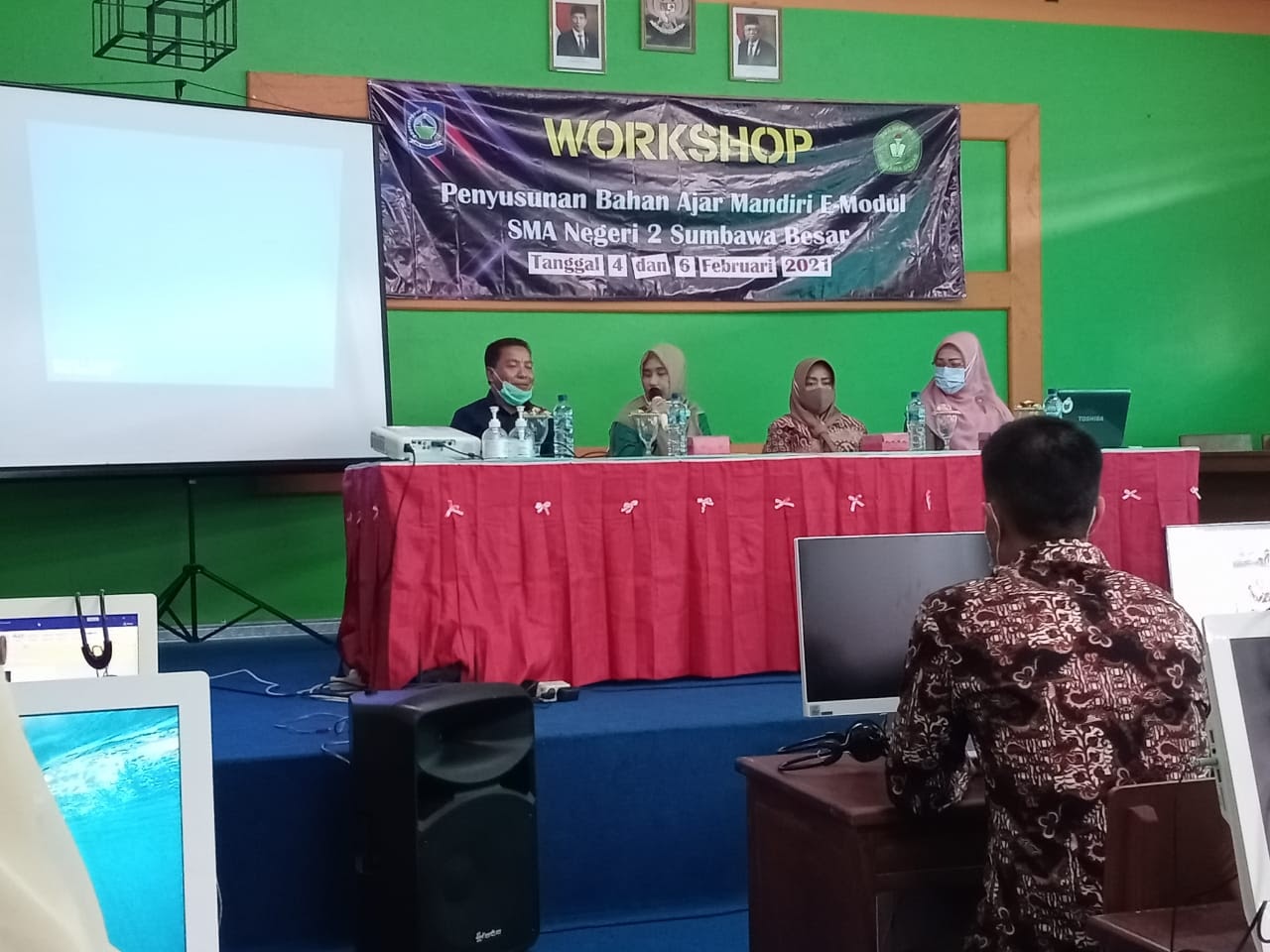 Dalam rangka meningkatkan kemampuan profesional dan pedagogik guru, SMAN 2 Sumbawa Besar melaksanakan kegiatan In House Training penyusunan E-modul berbasis IT, kegiatan tersebut berlangsung selama du