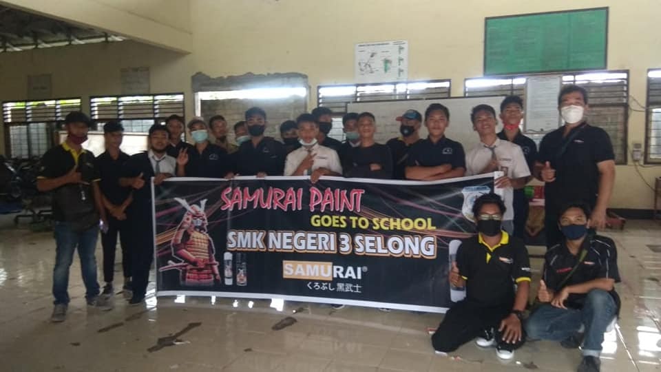 Kegiatan pelatihan pengecatan bagi siswa SMKN 3 Selong bekerja sama dengan Samurai Paint dalam program Samurai goes to school sebagai salah satu bentuk kegiatan untuk meningkatkan kompetensi siswa di