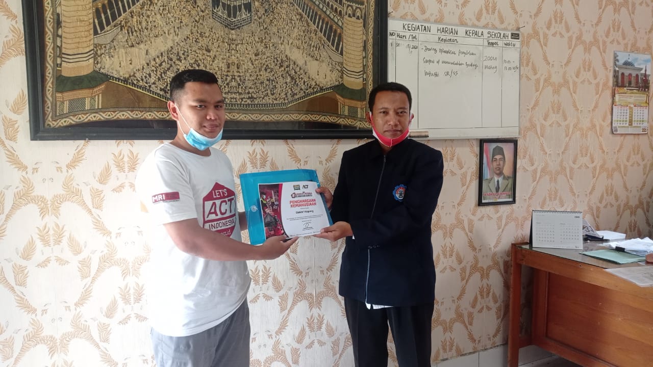 Pemberian Penghargaan Kemanusiaan untuk Kepala Sekolah SMKN 1 Kopang pada, Rabu 3 Februari 2021. Penghargaan ini diberikan setelah dilakukan penggalangan dana di sekolah terkait musibah banjir di Ku