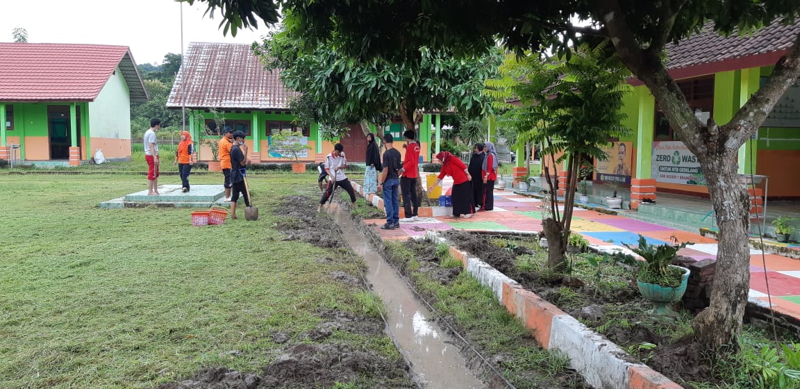 Dengan semangat gotong royong warga SMKN 1 Brang Ene melakukan perbaikan drainase sekolah
