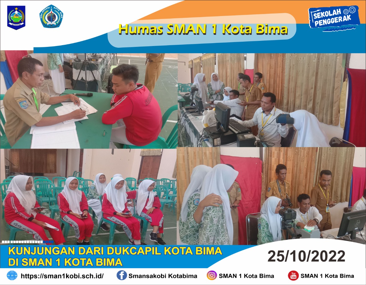 Pada hari Selasa, 25 Oktober 2022 di Kota Bima – Dinas Kependudukan dan Pencatatan Sipil (DUKCAPIL) Kota Bima mengunjungi SMAN 1Kota Bima untuk melakukan perekaman identitas. “Ratusan siswa melaku