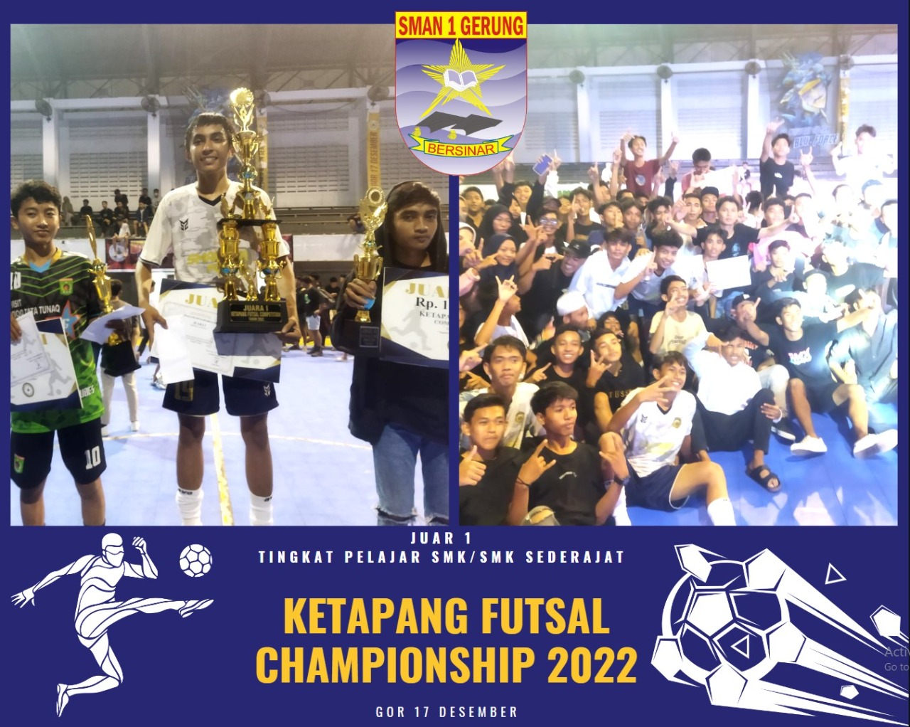 SMAN 1 GERUNG- Kado Manis Pertama Untuk Milad SMANGER yang ke-39 datang dari ekskul Sepak Bola Futsal. Tim Futsal SMANGER berhasil menjadi juara pada Event Weekend Ketapang Futsal Championship Cup Ses