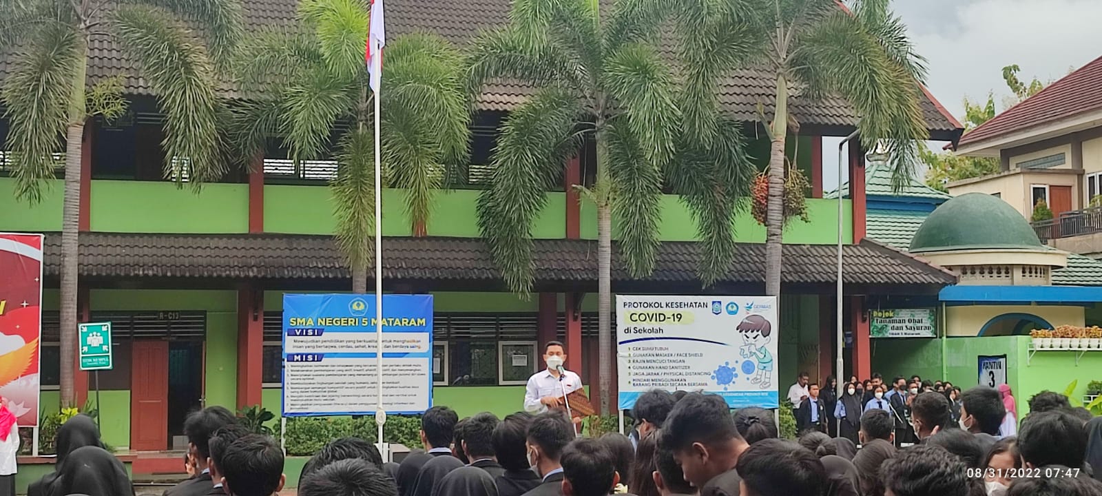 Setelah semua simulasi dan geladi selesai, pelaksanaan AN untuk satuan pendidikan dimulai hari ini 29 Agustus 2022. Drs. H. Artajab selaku Kepala Sekolah SMAN 1 Masbagik meminta penerapan protokol kes