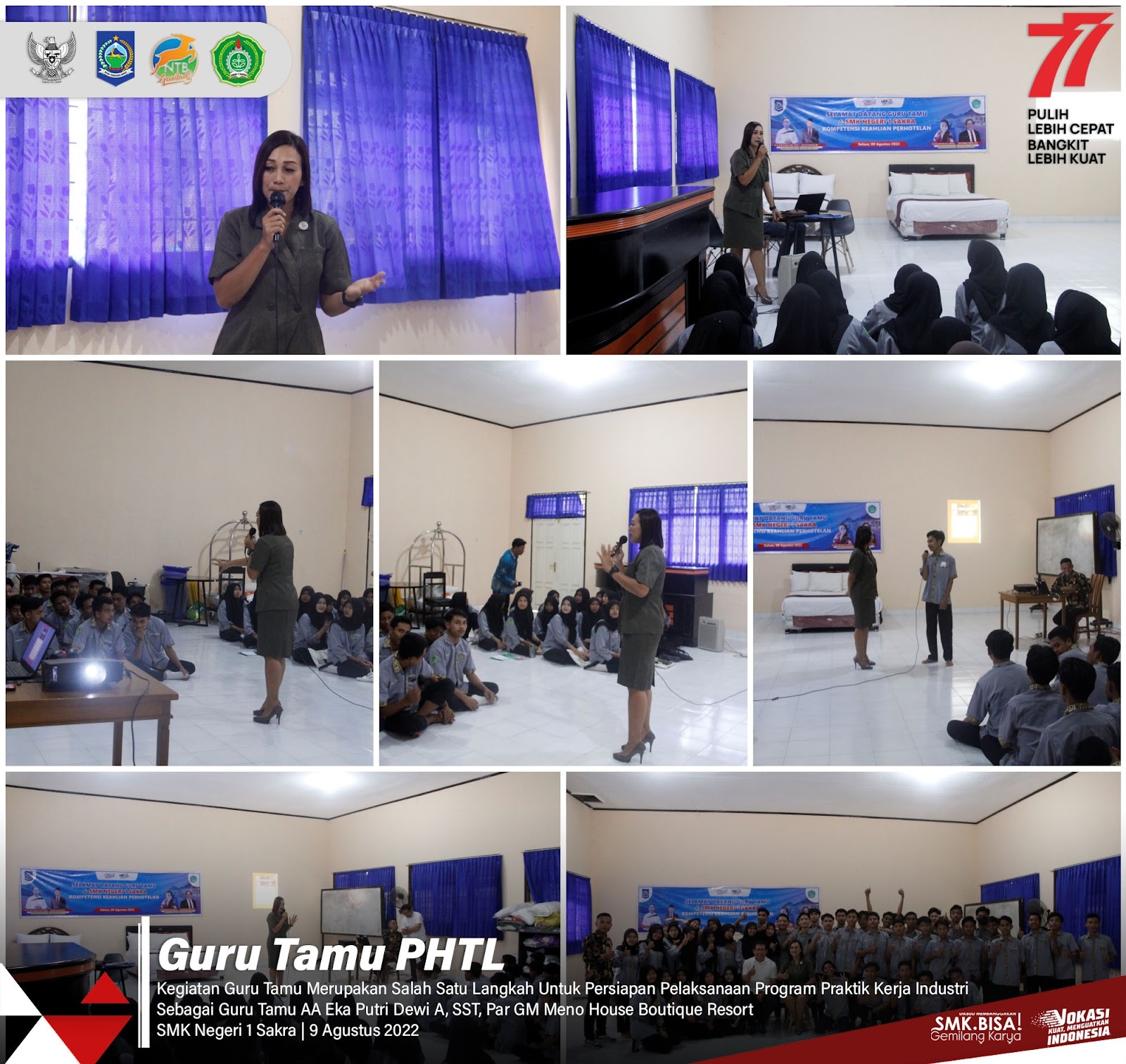 Pada hari Selasa, 09 Agustus 2022 Dalam rangka persiapan pelaksanaan program Praktik Kerja Industri (Prakerin) Kompetensi Keahlian Perhotelan Tahun Pelajaran 2022/2023. SMKN 1 Sakra menghadirkan Guru