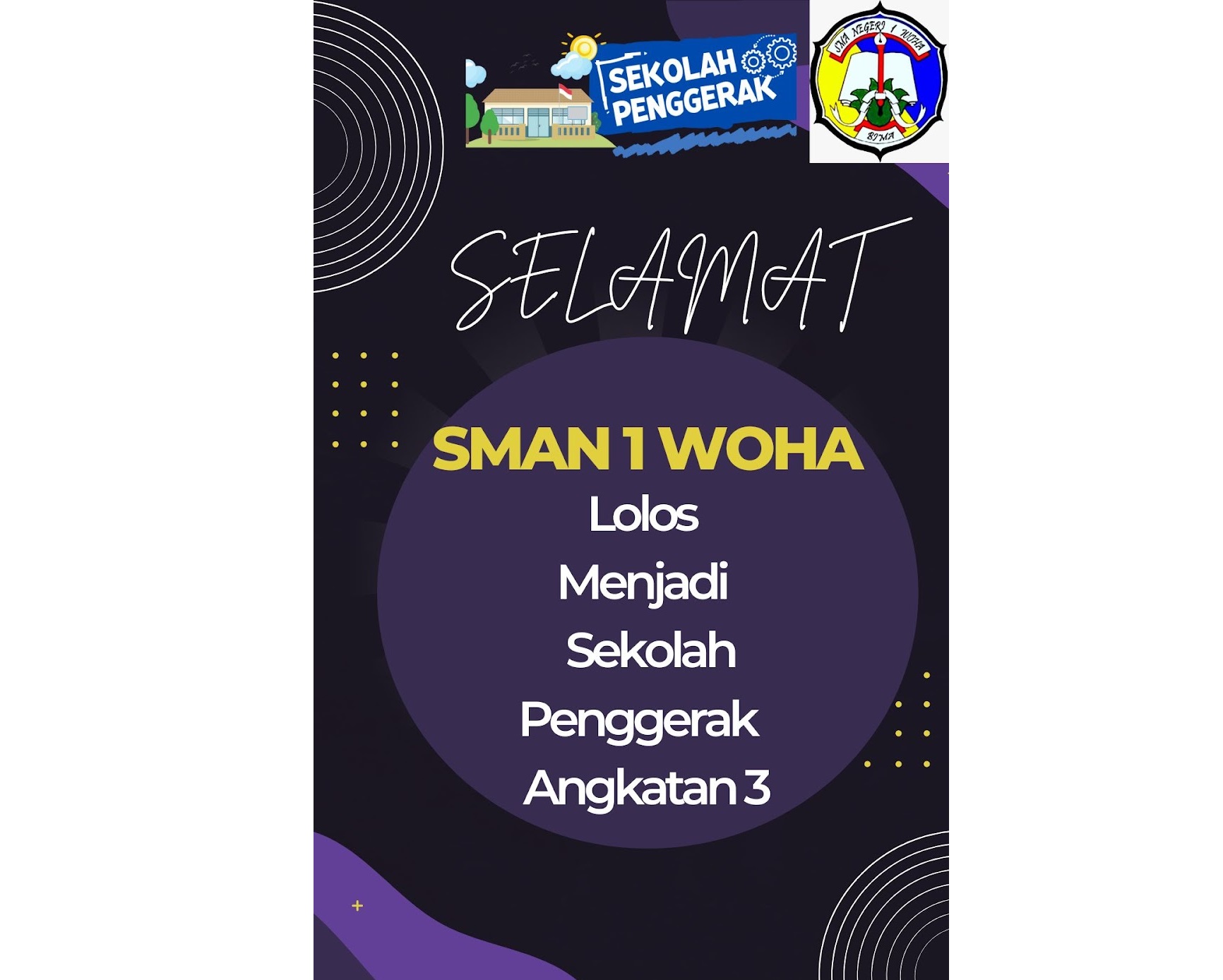 Selamat SMAN 1 Woha Lolos Menjadi Sekolah Penggerak Angkatan 3. Keputusan ini ditetapkan Pada Lampiran Keputusan Direktur Jenderal Pendidikan Anak Usia Dini, Pendidikan Dasar, dan Pendidikan Menengah
