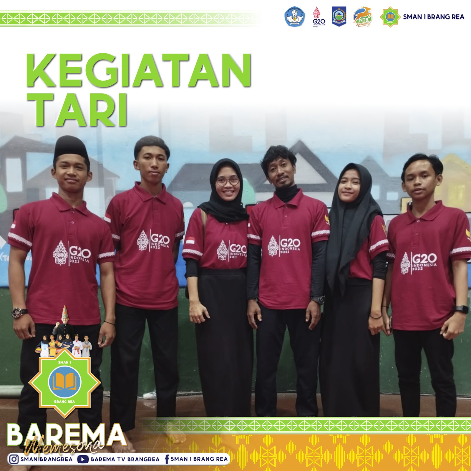 Pada hari Jumat, 12 Agustus 2022 Siswa-siswi SMAN 1 Brang Rea Wista, Rendi, Sita, Adetiya, dan Dwis bersama Guru Seni Budaya Danang Ramadhon, S.Si. berangkat menuju Jakarta. Mereka terpilih sebagai Ti