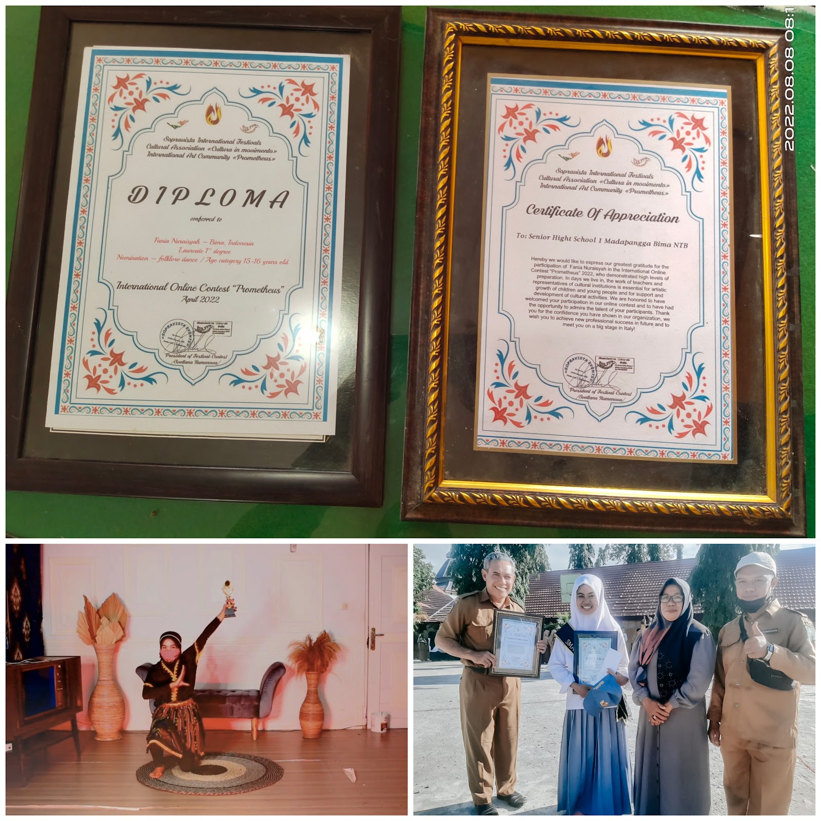 Sekolah Menengah Atas Negeri (SMAN) 1, Kecamatan Madapangga, Kabupaten Bima, kembali menorehkan prestasi. Kali ini, Fania Nuraisyah, siswi Kelas III IPA 2 menyabet juara satu pada lomba Tari Internas