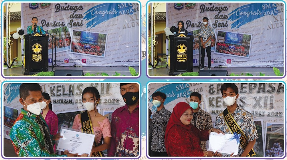 Rangkaian acara gelar budaya dan pentas seni dilaksanakan berbarengan dengan seremonial pelepasan angkatan ke-45 SMAN 2 Mataram. Penyampaian kesan dan pesan oleh siswa perwakilan kelas XI dan XII sert