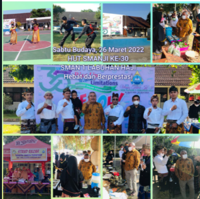Pada hari Sabtu, 26 Maret 2022 SMA Negeri 1 Labuhan Haji mengadakan kegiatan Bazar dengan tema kuliner tradisional dan pameran motif batik nuansa lokal. Kegiatan ini diikuti oleh semua kelas X dan XI.