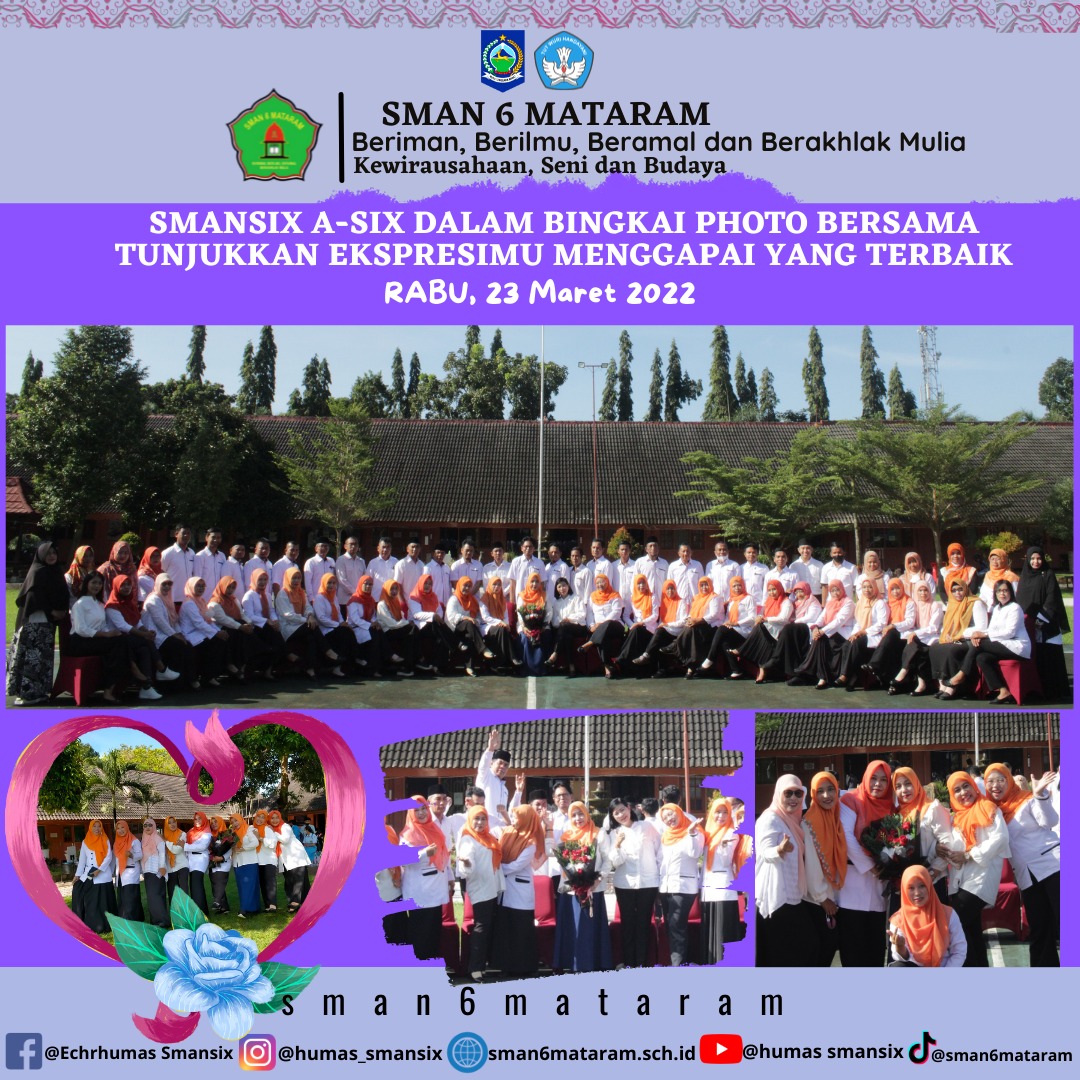 Pada hari Rabu, 23 Maret 2021- SMAN 6 Mataram melaksanakan sesi foto bersama bapak/Ibu guru dan Staf TU. Kegiatan ini dilakukan agar mempererat silaturahmi antar guru dan juga sebagai bentuk kenang-ke
