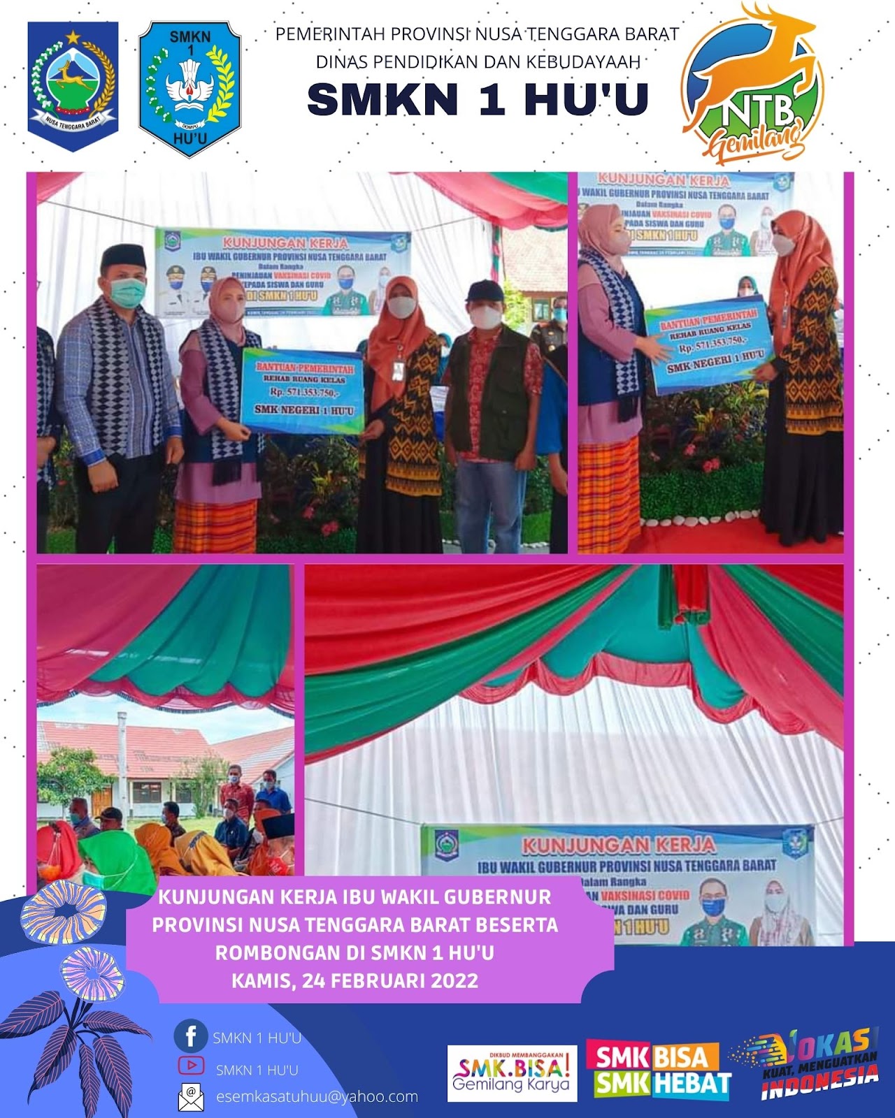 Pelaksanaan kegiatan Vaksin pertama dan kedua bagi guru dan siswa di SMKN 1 Hu'u yang langsung dipantau oleh Ibu Wakil Gubernur Nusa Tenggara Barat. Terima kasih yg tak terhingga kepada Tim Vaksin d