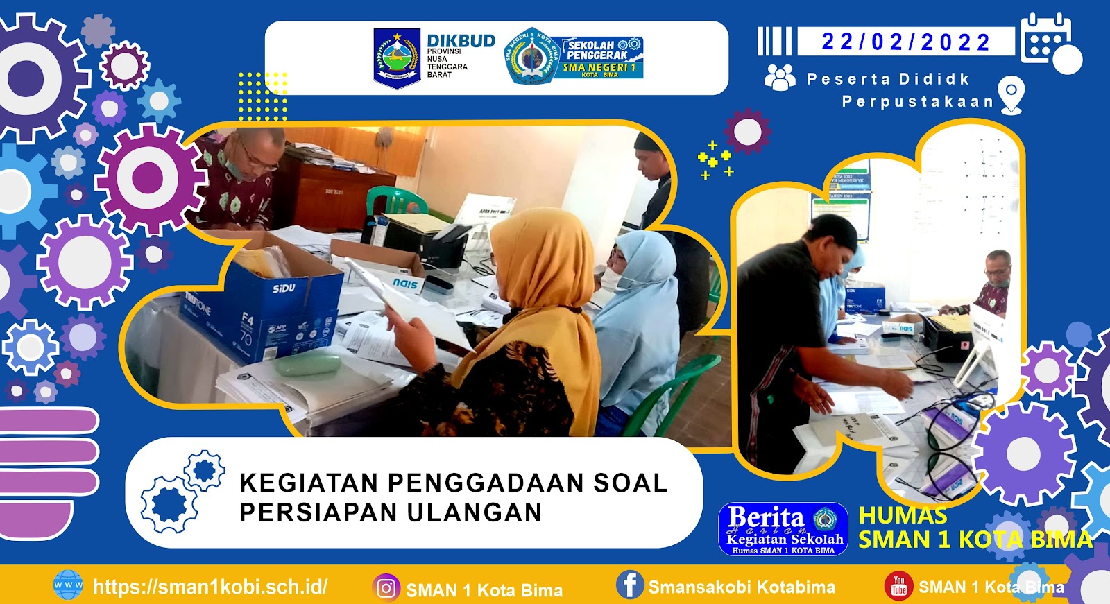 Menjelang PAS dan PTS SMAN 1 KOTA BIMA mulai gandankan Soal. Penggadaan Soal tersebut di kerjakan oleh panitia sebagai persipan ulangan yang akan datang. Kegiatan dilakukan di ruang TPK sekolah selama
