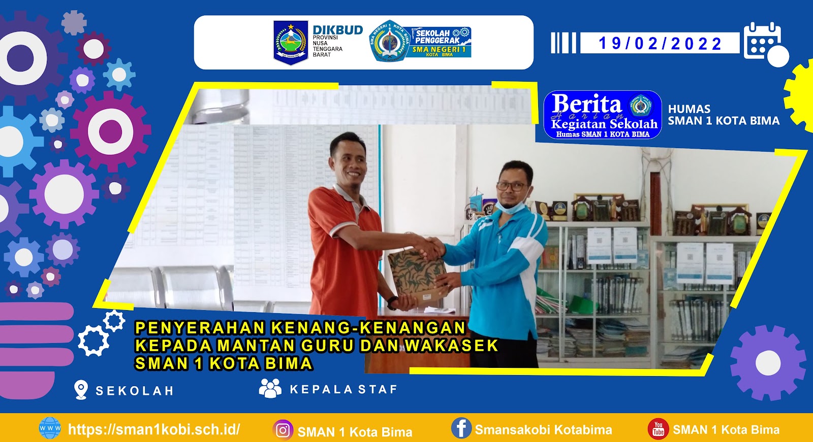 SMAN 1 KOTA BIMA memberi penghargaan kepada matan pengajarnya. Perngahrgaan tersebut berupa kenang-kenagan yang mungkin tidak seberapa di bading dengan jasanya selama berada di Sekolah, selain sebagai